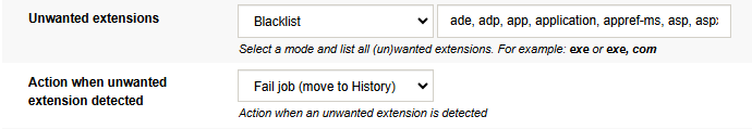 • Change Action when unwanted extension detected to Fail job (move to History).