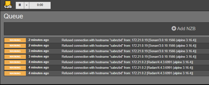 If you're trying to connect your Starr apps to SABnzbd and you're getting an error like Unable to connect to SABnzbd after clicking on Test.